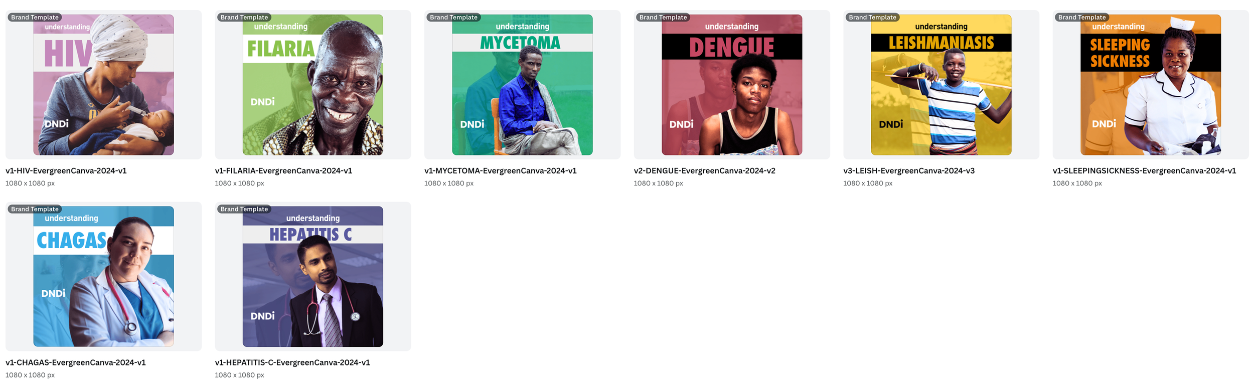 To enhance accessibility and usability, I designed these pieces in Canva, empowering non-designer colleagues to make simple edits as needed. This approach ensured the content could be updated efficiently without compromising its visual integrity. At the heart of these designs was a focus on the individuals affected—those often overlooked in the global health narrative. Through prominent, dynamic, and captivating imagery, I placed these individuals at the forefront, portraying them as patients and heroes in the ongoing fight for treatments for neglected diseases.